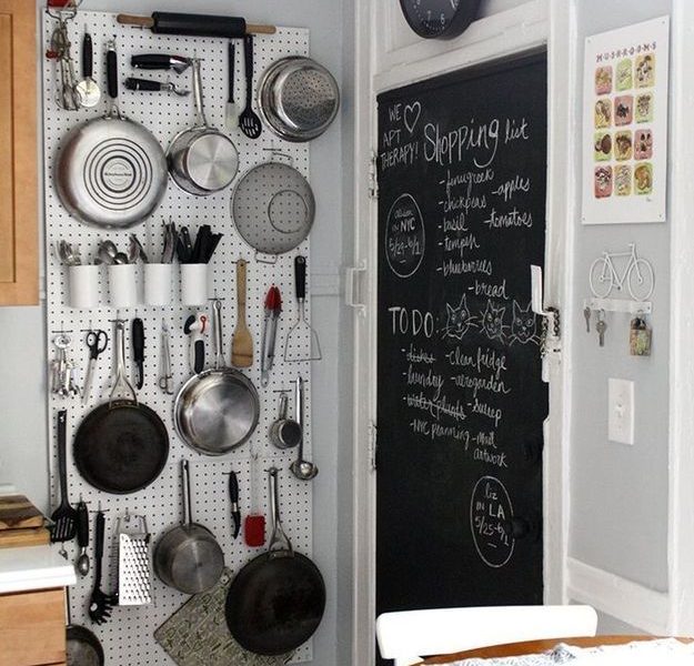 Организация и хранение на кухне: 65 способов Кухня – это пространство, которое сложнее всего организовать, поскольку в нём одновременно хранится очень много предметов различного назначения. Мы подготовили для вас подборку из самых остроумных решений данной проблемы. Повесьте на крючки те элементы, которые вы чаще всего используете. Многоуровневые системы с полками и рейлингами универсального назначения. Интересный подход к хранению столовых приборов. Не бойтесь экспериментировать. Например, на зубцах антикварных грабель можно развесить кухонные принадлежности. Сотейники и сковороды занимают много места. Поэтому для большей практичности их можно разместить на стене. Используйте обыкновенные бельевые прищепки для подвешивания полотенец. Перфорированная панель — это ещё один вариант универсальной системы хранения. Подвесные контейнеры ценятся за ихЧитать дальше…