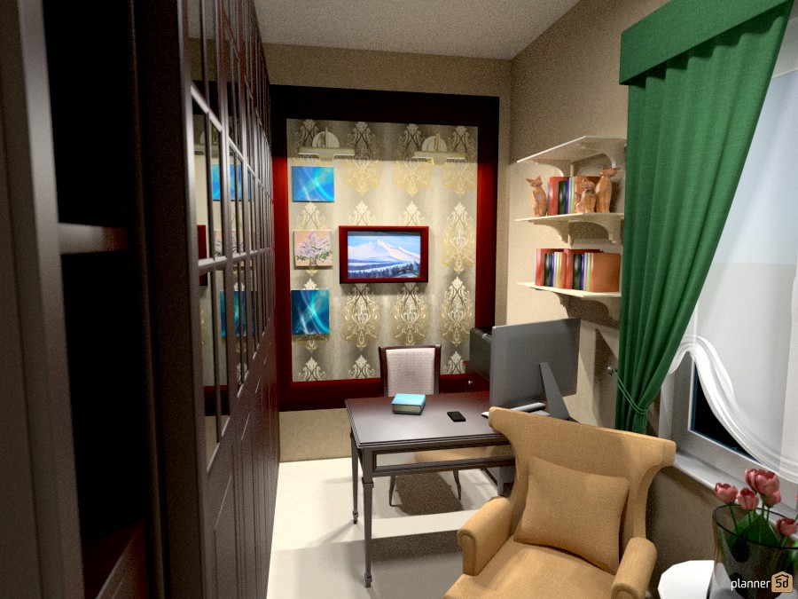 Но если вы решили организовать себе такой “мини” кабинет, то продумайте его планировку заранее: будете ли вы отделять эту зону перегородкой или ограничитесь постановкой мебели? Выберите нужную мебель.