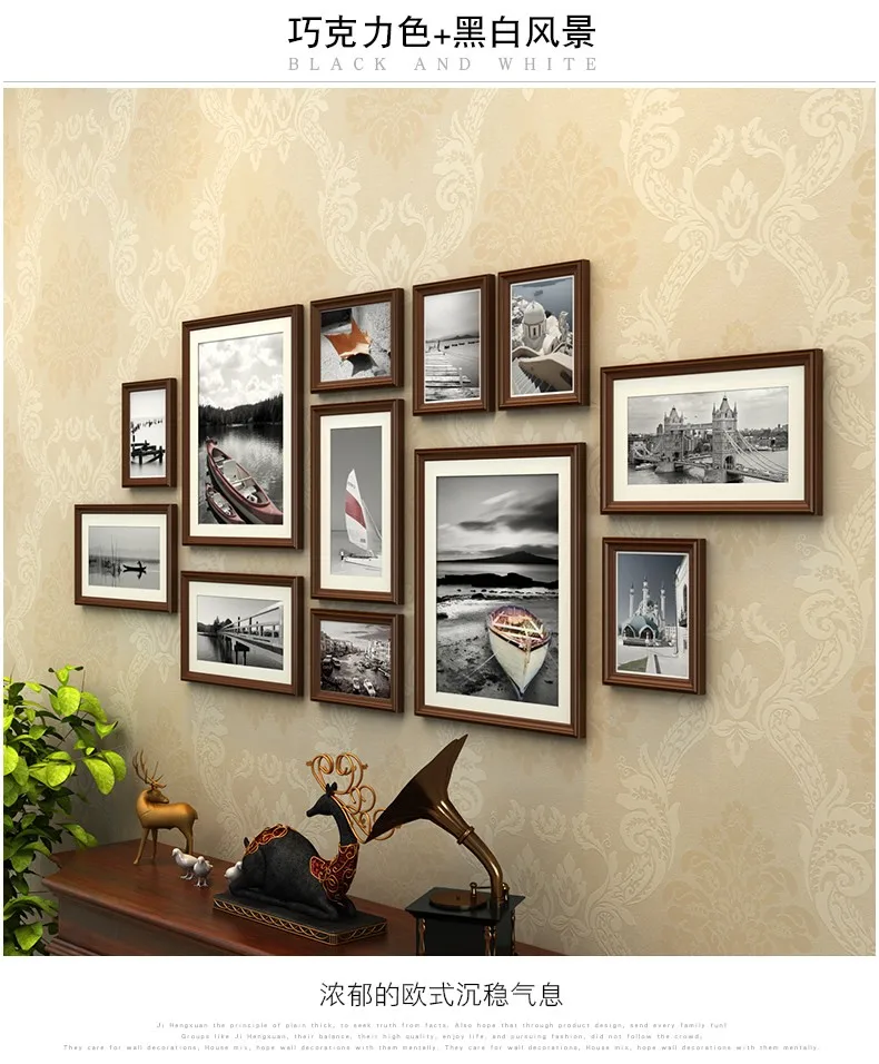 Перед тем как повесить фоторамки, следует тщательно выбрать фото, которые будут украшать комнату. Не обязательно выбирать изображения любимых людей. Хорошо и динамично смотрятся изображения различных красивых мест городов, природы, животных и прочее. В классических пространствах отлично подходят ретро фотографии в черно-белом стиле.