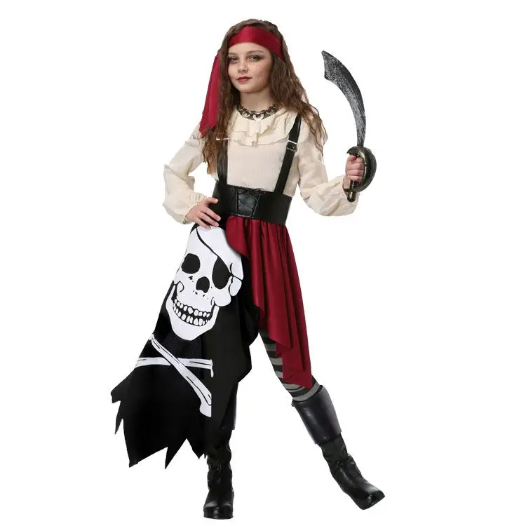 Пират«Девочка-подросток в экзотическом, стильном, диком костюме пирата доминирует в танце Хэллоуина».