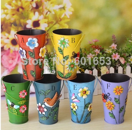 Хороший цветочный горшок получится из обычного металлического ведра. Так же, как в металлической банке, в дне ведра пробивают дырки. Покрасьте будущий горшок в тот цвет, который Вам больше нравится.